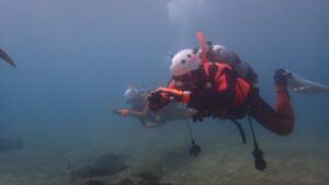 下田消防本部との水難救助合同訓練を実施しました 投稿公開日:2025年10月23日 投稿カテゴリー:水難救助 本日、松崎町雲見海岸において下田消防本部と当DRS救難所との合同水難救助訓練を開催し、下田消防本部からは6名の救助員が、当DRS救難所からも救助員6名が参加しました。ジャックステイ水中捜索訓練だけでなく、潜水の基礎となる中性浮力やフィンワークの訓練も行いました。日頃から共に水難救助活動をしている機関とは顔の見える関係を作り、連携強化ができるようにこのような訓練が必要となります。参加していただいた皆様、お疲れ様でした。 おすすめ 海上防災基地での訓練の新聞記事 2018年2月13日 救助員向けの潜水捜索訓練を開催しました 2023年6月9日 潜水技術研修のサポート 2021年10月25日